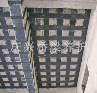 混凝土表面處理→修補(bǔ)找平→配制底膠→涂刷膠底→配制浸脂膠→涂浸脂膠→粘貼碳纖維布→涂浸脂膠→養(yǎng)護(hù)固化→防護(hù)