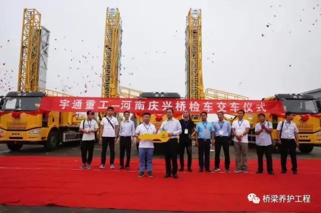 9月4日,“宇通重工—河南慶興橋檢車交車儀式”在宇通重工工業(yè)園區(qū)隆重舉行,慶興公司再次喜迎一批新裝備下線!河南慶興路橋工程有限公司總經(jīng)理王新州、河南慶興路橋副總經(jīng)理蘇嚴(yán)浩、宇通重工基礎(chǔ)工程機(jī)械分公司總經(jīng)理郭旭東、橋檢車銷售公司總經(jīng)理龍少義等出席交車儀式。